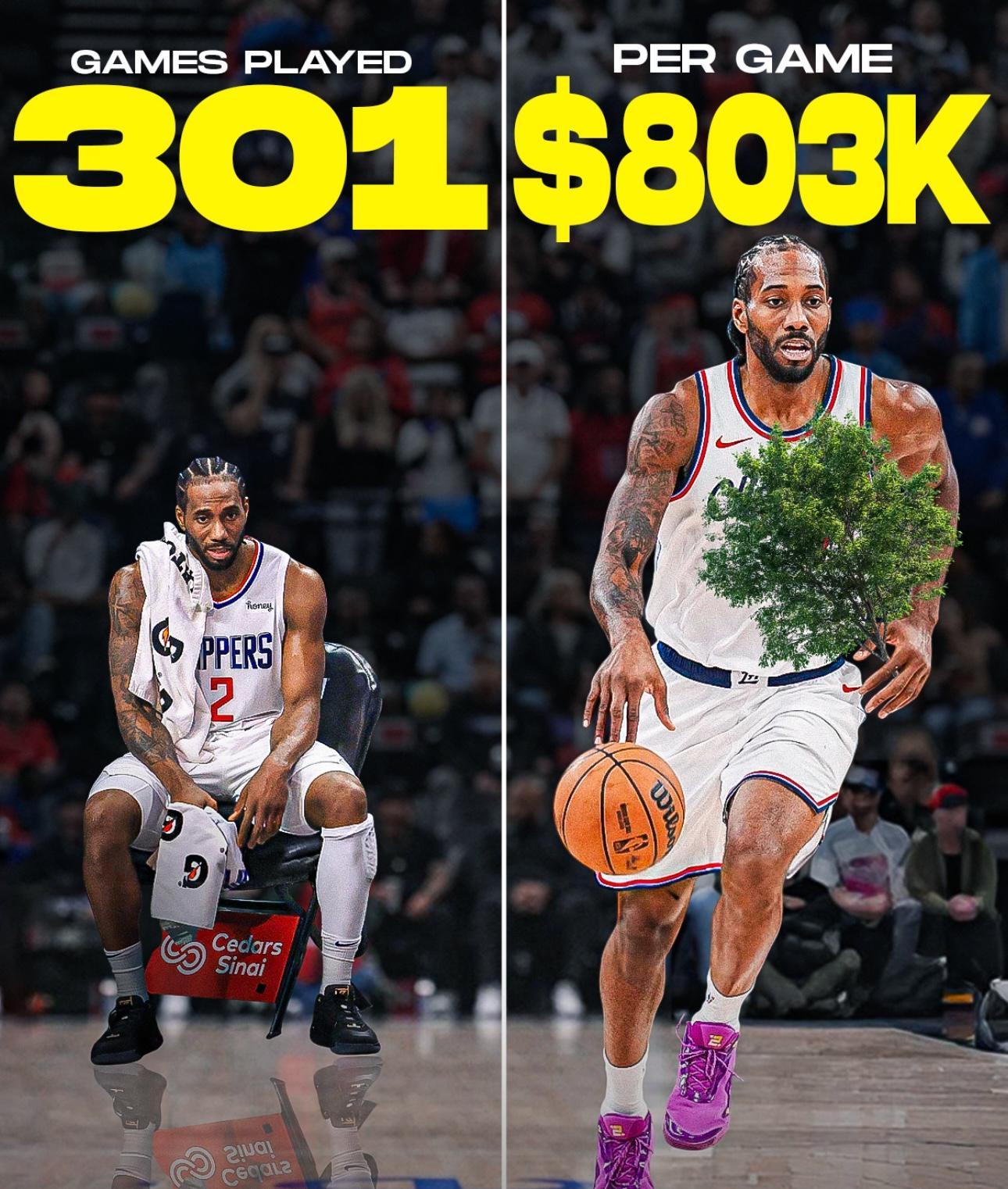 “现在,伦纳德卷入了一场丑闻中,根据Pablo Torre的报道,伦纳德涉嫌与快船老板鲍尔默关联的一家欺诈性植树公司签订了一份2800万美元的‘空头工作’代言合同,据称这是为了规避薪资帽。即使没有这笔暗箱操作的资金,伦纳德在快船已经赚了2.417亿美元,这相当于每场比赛赚到80.3万美元,并且他在未来两个赛季,还将获得1.003亿美元的薪水。”