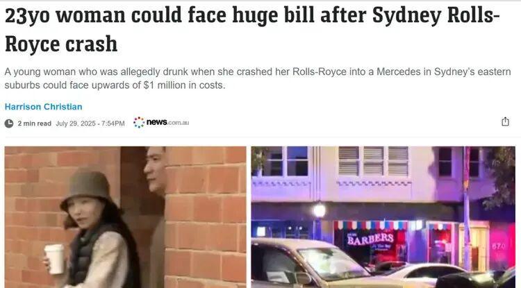 真实情况是:一名23岁华裔女子杨兰兰(音译),在悉尼驾驶劳斯莱斯逆行醉驾,撞上电台名嘴司机的车。她被控酒驾、拒做酒精测试、造成人身伤害,还新增一项“未向警方提供个人信息”。