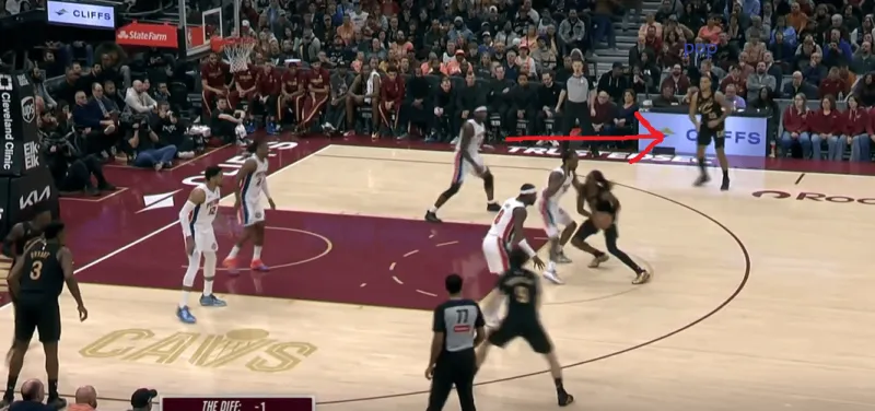 当对位中锋时,泰森主导拉开单侧的二人转掩护发起,埃利斯的突破吸引斯图尔特回收,这给了泰森外弹利用脚步优势惩罚对手的机会。